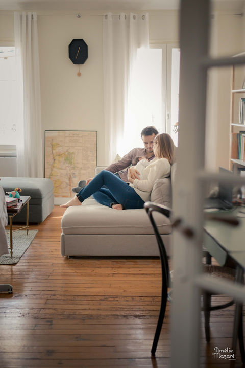 ".. je voulais garder une empreinte de ces moments tellement précieux de notre famille naissante. Et nous somme comblés... Les photos sont représentatives de ce qu’on a vécu avec lui le premier mois de sa vie, dans l’instant présent, et c’est exactement ce que je voulais. Tout est sensible, les photos nous ramènent à nos sensations de parents, la douceur de sa peau, sa fragilité.  Mon compagnon a versé sa petite larme. Amélie a su capter une belle palette d'expressions de notre bébé, et on se trouve beaux tous les 3 malgré la fatigue... Et les couleurs sont canons, on ressent bien notre univers.